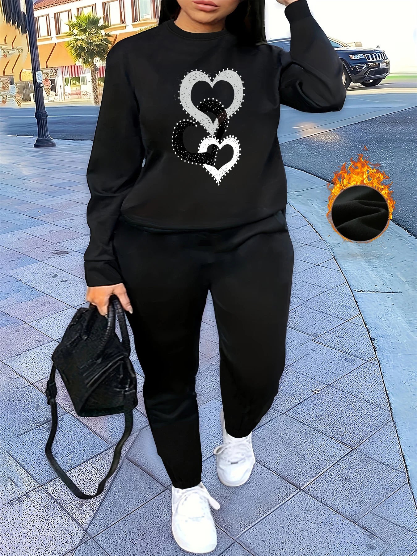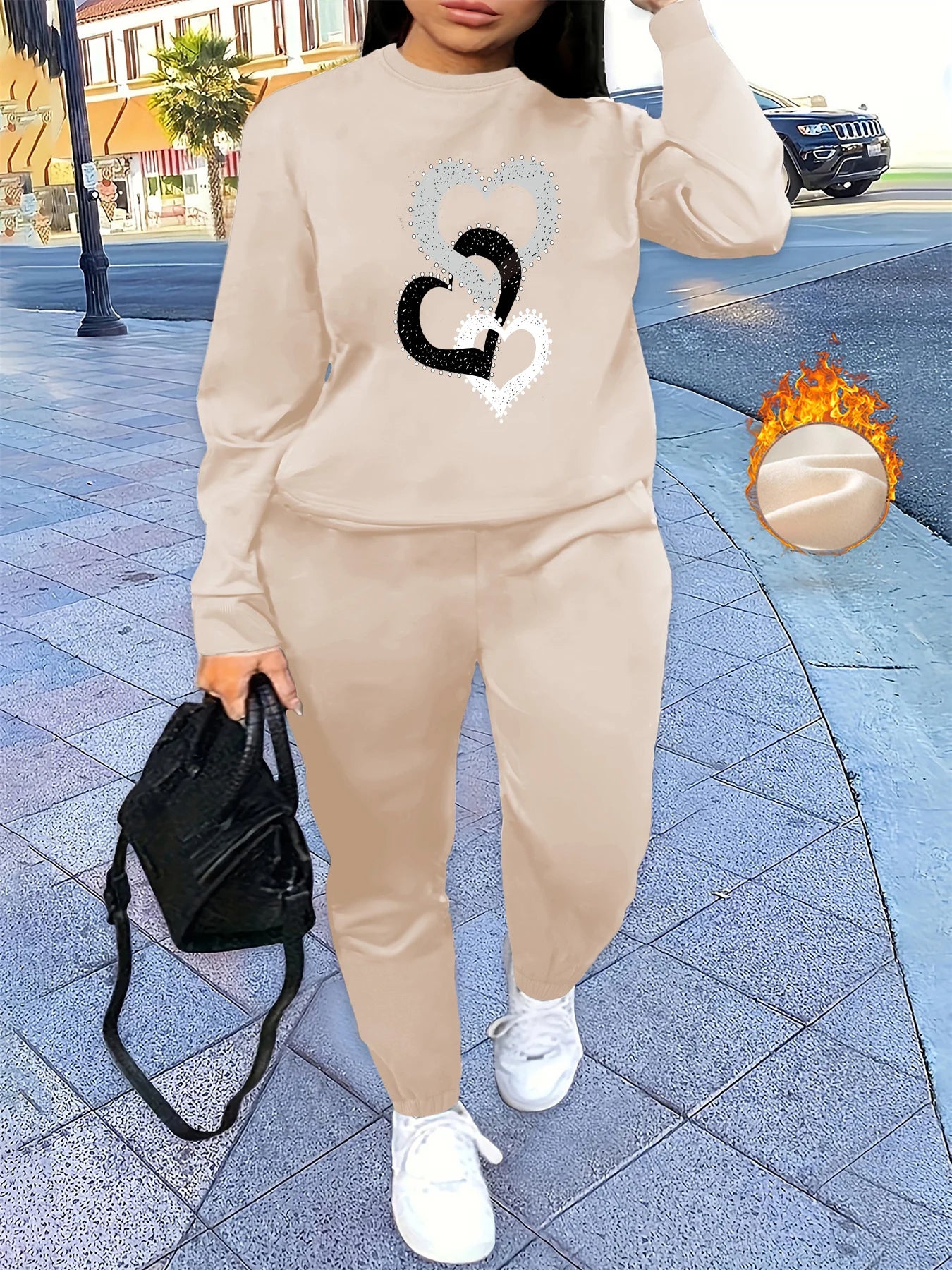 Sweatshirt com gola redonda e calças coordenadas para um look harmonioso
